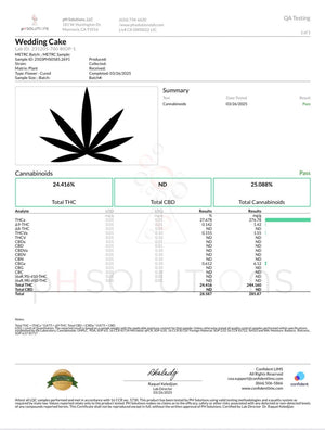 Limited Time! Indoor Wedding Cake is a hybrid cross between Triangle Kush and Animal Mintz. This popular strain yields sticky buds with a solid structure. The flavor profile is spicy with hints of fruit and sweet vanilla. This indica hybrid strain is more suitable for evening use. Wedding Cake provides extreme cerebral effects with full body relaxation. THC-A is a natural cannabinoid found in hemp flower. No conversion or infusion method is used in this product.