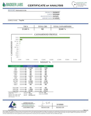 All BackWoodz premium hemp flower products go through 3rd party testing and organically grown without the use of pesticides. Trapzilla tests with 31.64% THCA and is under 0.3% Delta-9 THC. BackWoodz hemp flower is U.S Farm Bill compliant under the Agriculture Improvement Act (Sec. 10113).